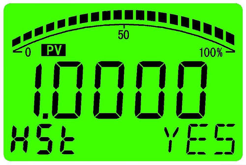 “NO” 不進(jìn)行零點(diǎn)有源遷移; “YES” 進(jìn)行零點(diǎn)有源遷移; 若30秒內(nèi)無任何按鍵操作,儀表將返回到測量模式。此功能禁止在生產(chǎn)過程中使用,適合在現(xiàn)場使用。 4.3.3滿點(diǎn)有源遷移 滿點(diǎn)有源遷移是將當(dāng)前壓力設(shè)定為變送器的滿點(diǎn)輸出,對變送器施加滿點(diǎn)壓力,長按“S”鍵5秒以上,儀表將交替顯示當(dāng)前壓力值與滿點(diǎn)輸出電流值,如右圖,菜單區(qū)顯示“HSt”,通過“S”鍵和“Z”鍵選擇需要進(jìn)行的操作,提示符區(qū)相應(yīng)顯示: