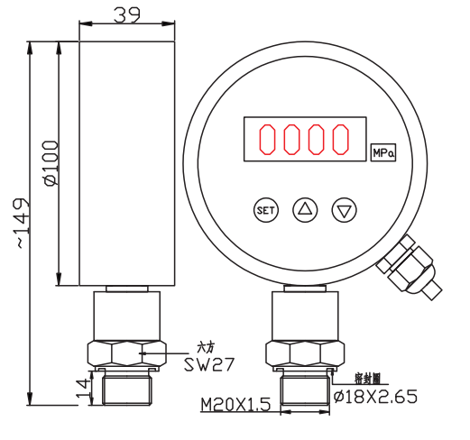 數(shù)字壓力表為全電子結(jié)構(gòu),前端采用帶隔離膜充油壓阻式壓力傳感器,輸出信號由高精度,低溫漂的放大器放大處理,送入高精度的A/D轉(zhuǎn)換器,轉(zhuǎn)換成微處理器可以處理的數(shù)字信號,經(jīng)過運算處理,由LED顯示器顯示出實際的壓力值。 該智能數(shù)顯壓力表使用靈活,操作簡單,調(diào)試容易,安全可靠。廣泛應(yīng)用于水電,自來水,石油,化工,機械,液壓等行業(yè),對流體介質(zhì)的壓力進行測量顯示。