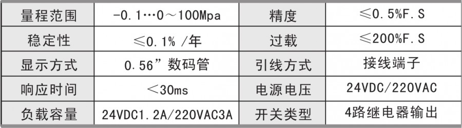 壓力預(yù)設(shè)開關(guān)點(diǎn)和延滯切換輸出